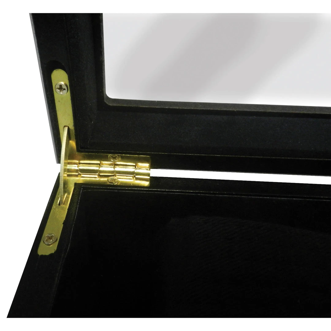 – Felt line shadow box display keeps your belts neat clean.