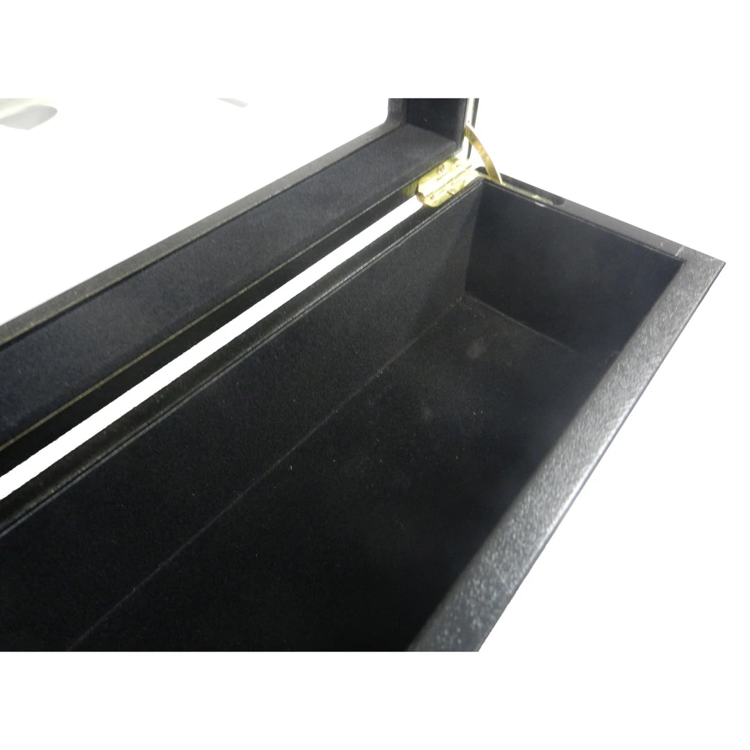 – Solid wood construction with hinge closed top offers a bold look.