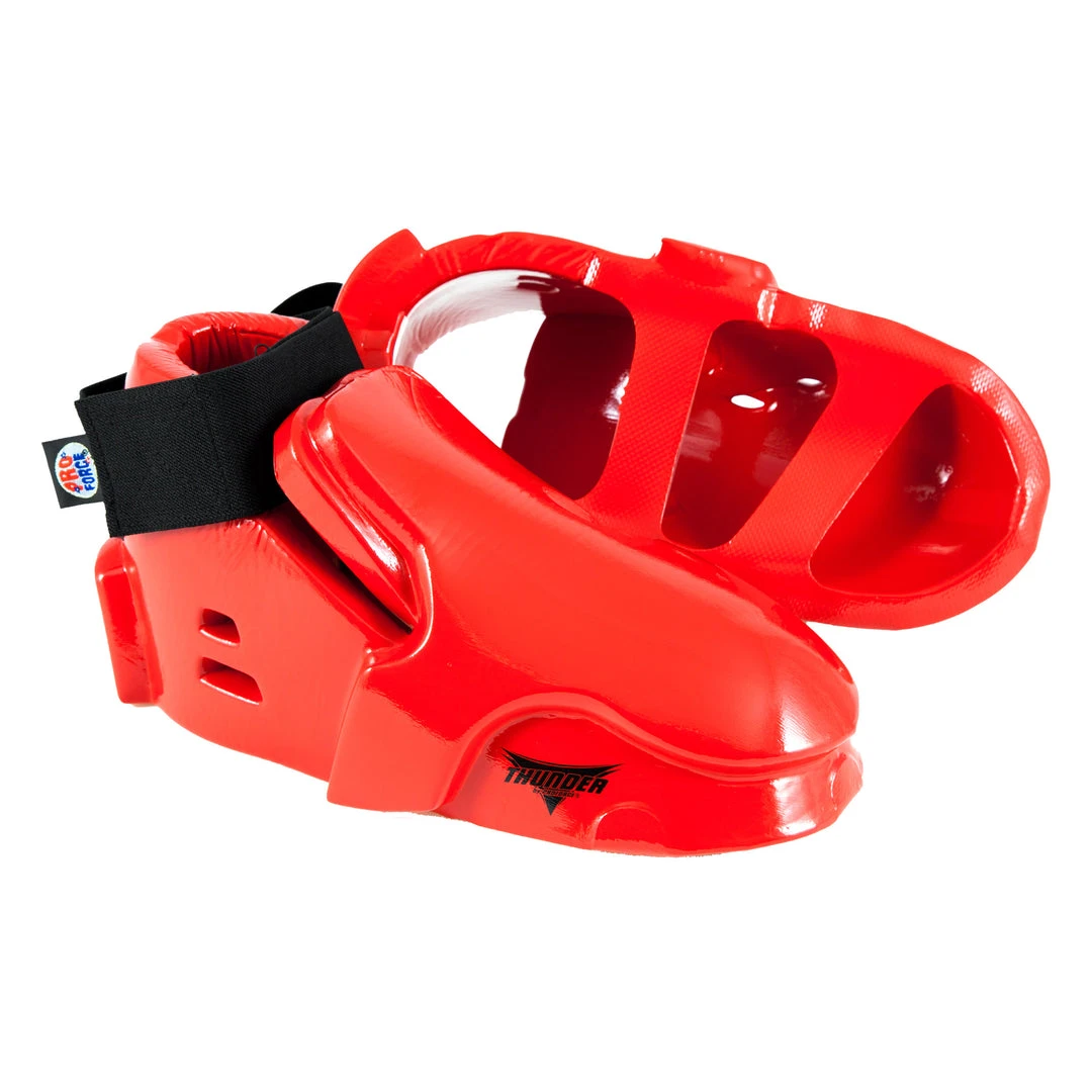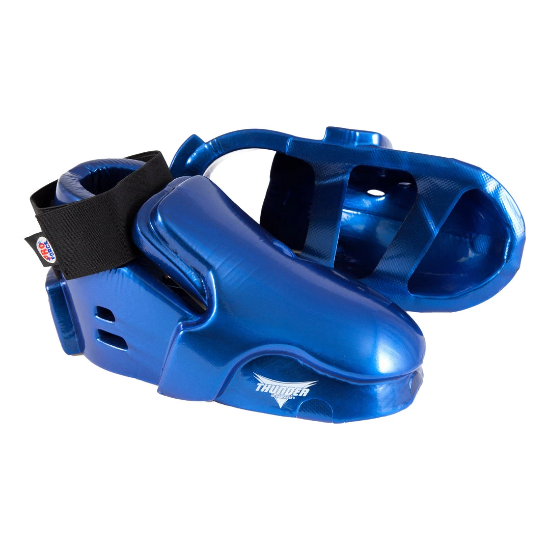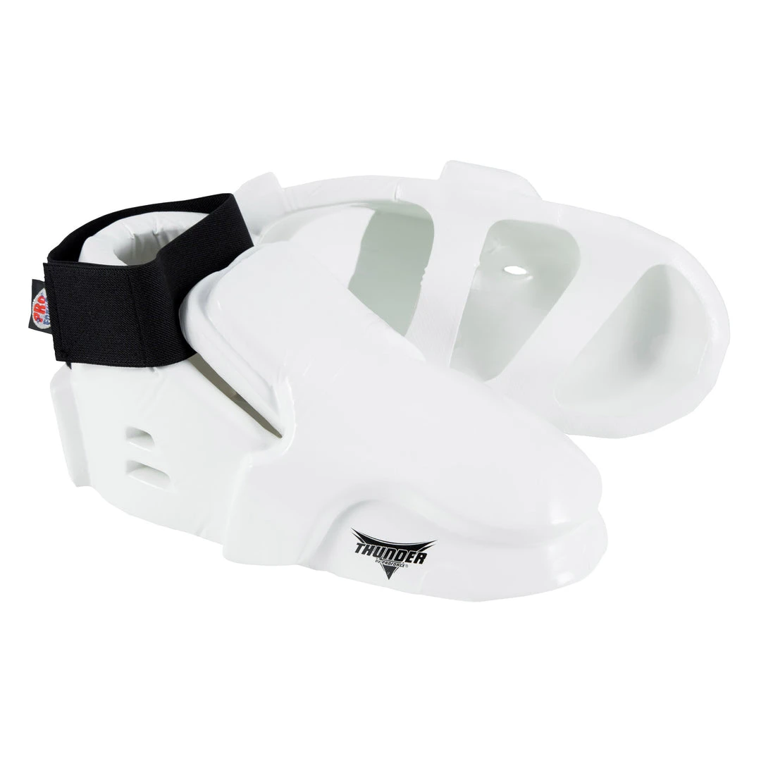 Personalize this gear with your own logo! Features double layered padding over high-impact and sensitive areas such as knuckles, instep and ears. The Thunder Double Layered gear offers excellent flexibility and movement and is well ventilated for better comfort. Hook and loop closures provides a snug fit. Sized to fit children through adult.