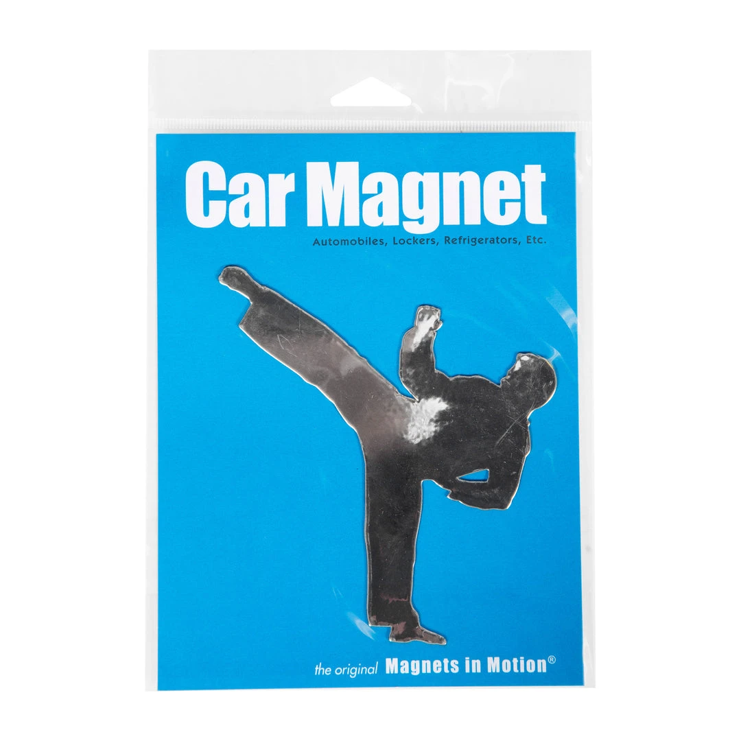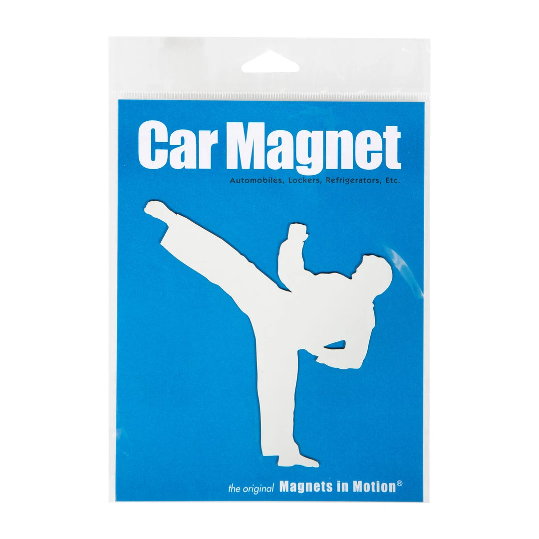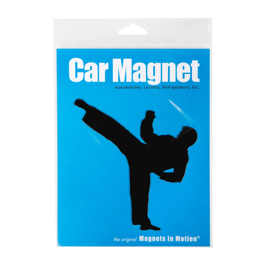 Display on vehicles, refrigerators, filing cabinets or metal desks. These magnets may be used over and over again. Female Jump Kick magnets measure 5 1/4” x 4”. Male Kicker magnets measure 4 3/4” x 5”. Female Kicker magnets measure 4 1/2” x 5”. Yin & Yang magnets measure 5” across.
