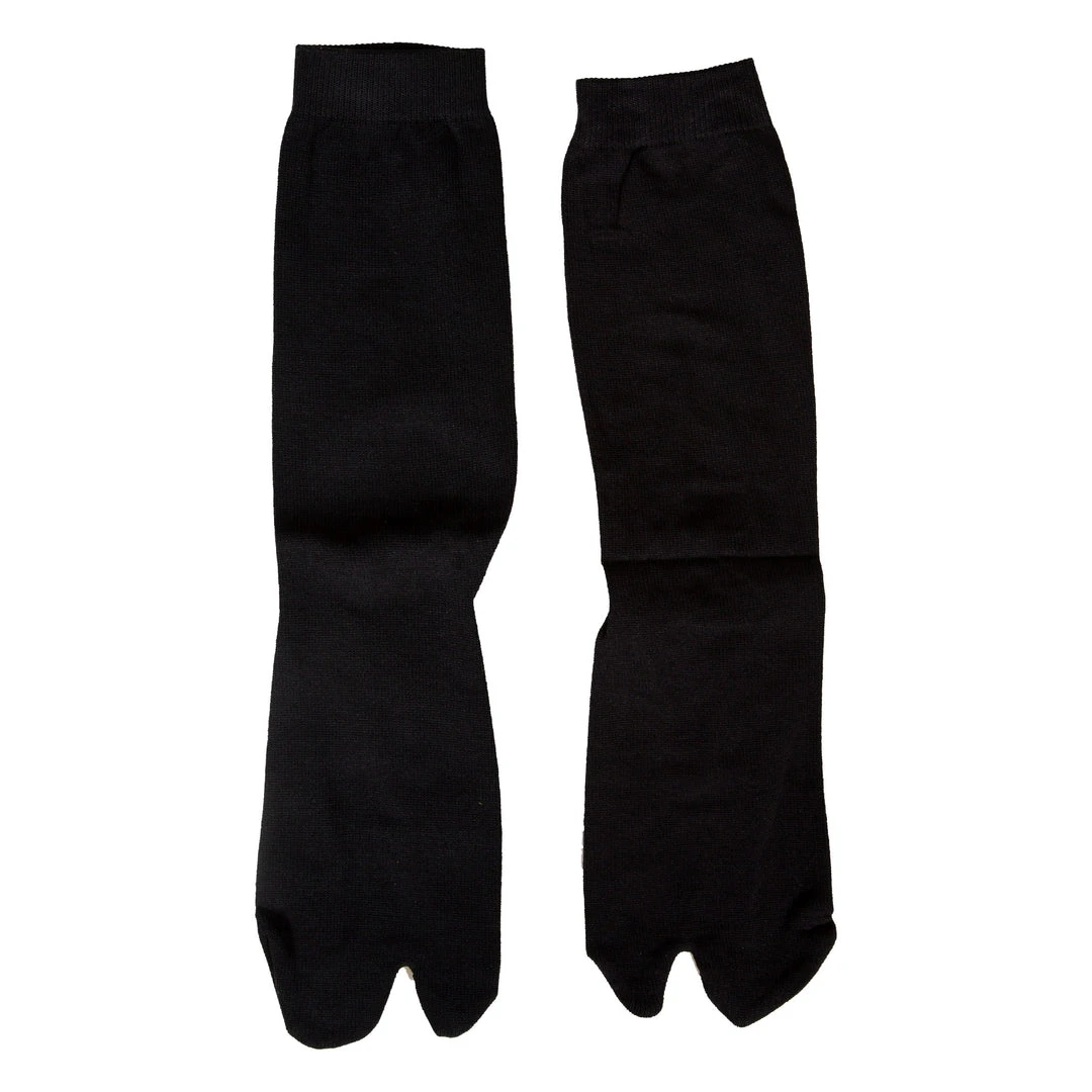 Great to wear with the tabi boot, these black 100% nylon socks feature the same split toe design.