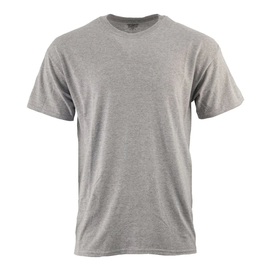 Durable cotton/poly blend plain tee shirt. Made of a Dry Blend fabric for that fresh look and feel all day. Perfect for customizing with your school logo. Comes in sizes youth medium to adult xxl.