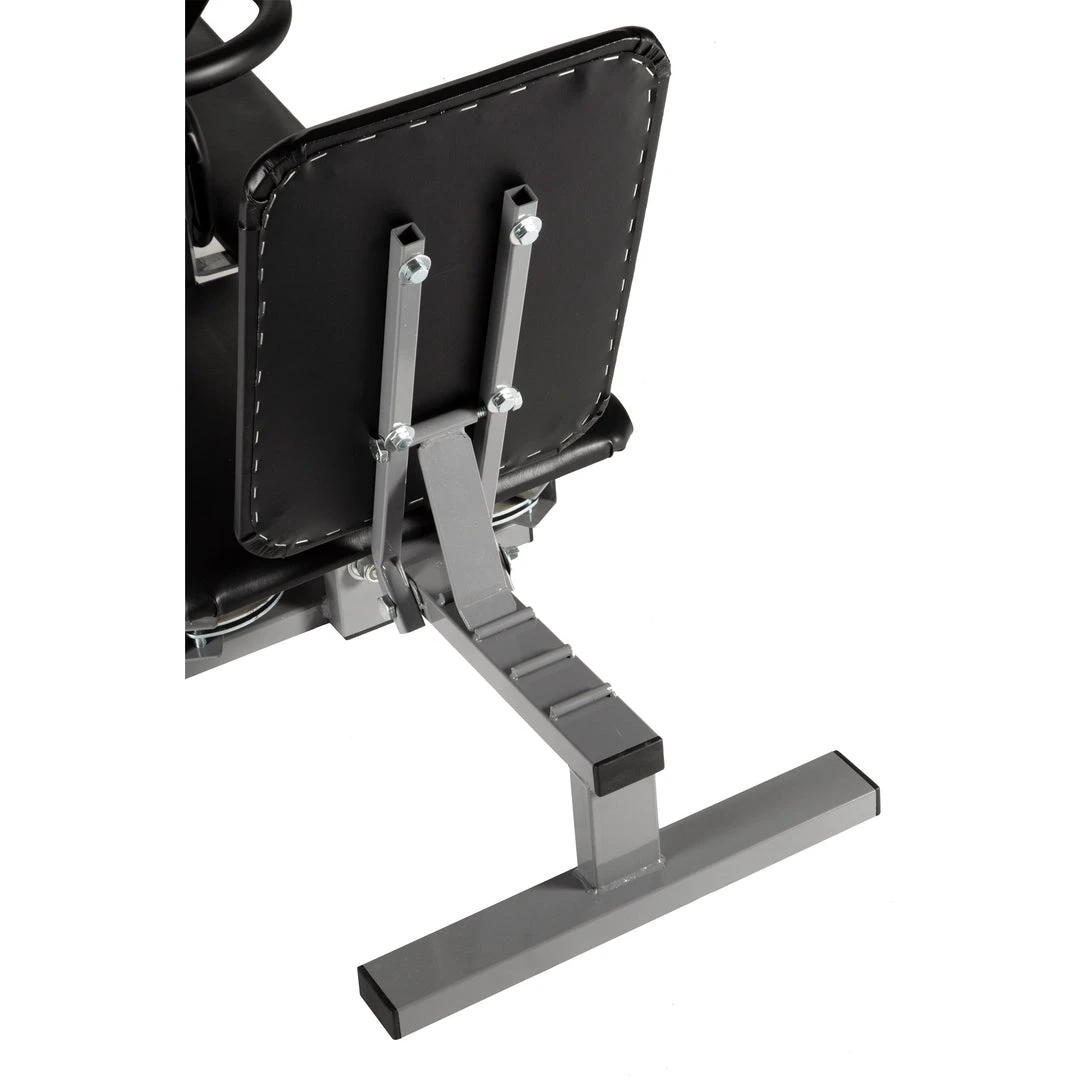For the ultimate leg stretch you need a super stretcher from ProForce?. Tubular steel construction gives you a sturdy base. Padded back rest and leg extensions give a comfortable workout. Simply turn the gear-driven crank and the leg holders with attached wheels allow you to stretch beyond 180ø. The stop latch enables you to slowly reach and hold your maximum stretch until you are ready to crank yourself back to a normal position. Back rest folds down and the turn wheel is removable for easy storage. Additional shipping charges apply to this item due to its size and/or weight.
