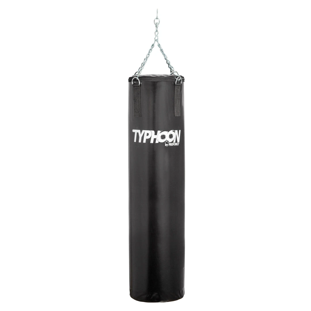 Typhoon season is upon you! This new training bag from ProForce features a water filled bladder designed to simulate the feel of punching a human body. Thick 2.5" foam padding surrounds the bladder. Choose from three different sizes. The outer shell is made of a durable, reinforced black vinyl that can reallywithstanda workout. Zippered top makes filling and refilling the bladder very easy. With hanging chain attachment and elastic tie-down the Typhoon bag is easily hung and ready for action. Shipped unfilled.