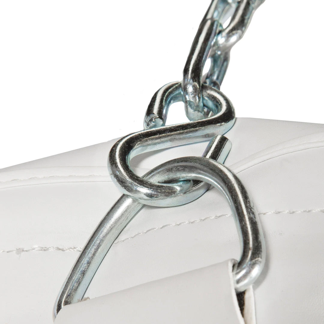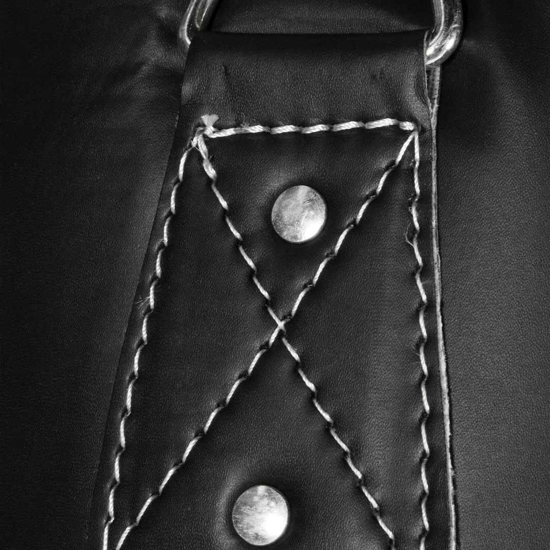 Constructed of super durable Japanese Cordley. Reinforced stitching throughout. Includes four solid stainless steel chain links and pro style swivel with zinc galvanized finish. Includes four s hooks for fast and convenient attachment. Double ended design with D-ring on the bottom to secure to the floor or a sand bag for more stability.