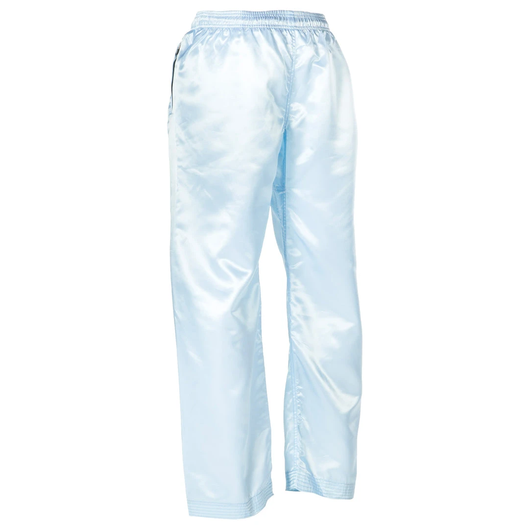 These 6 oz. light weight karate pants come with side pockets and are made of 100% polyester satin and feature an elastic drawstring waist. Available in 3 silky soft color options and sizes raning from xsmall to xlarge.