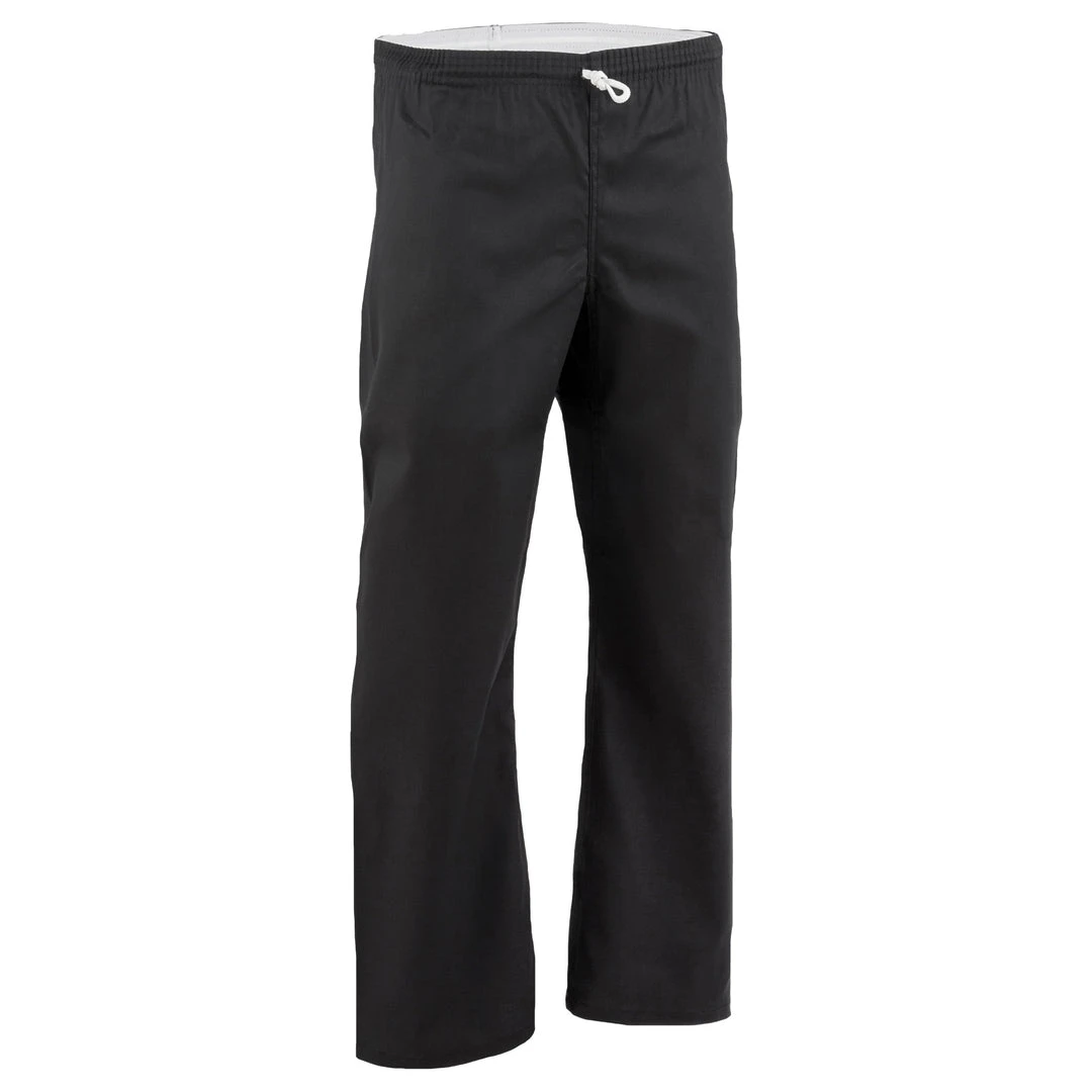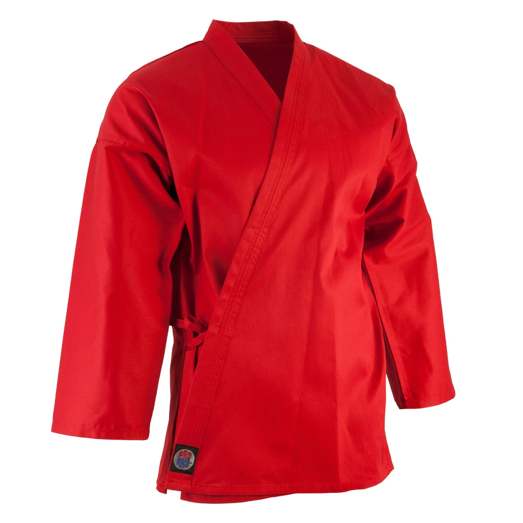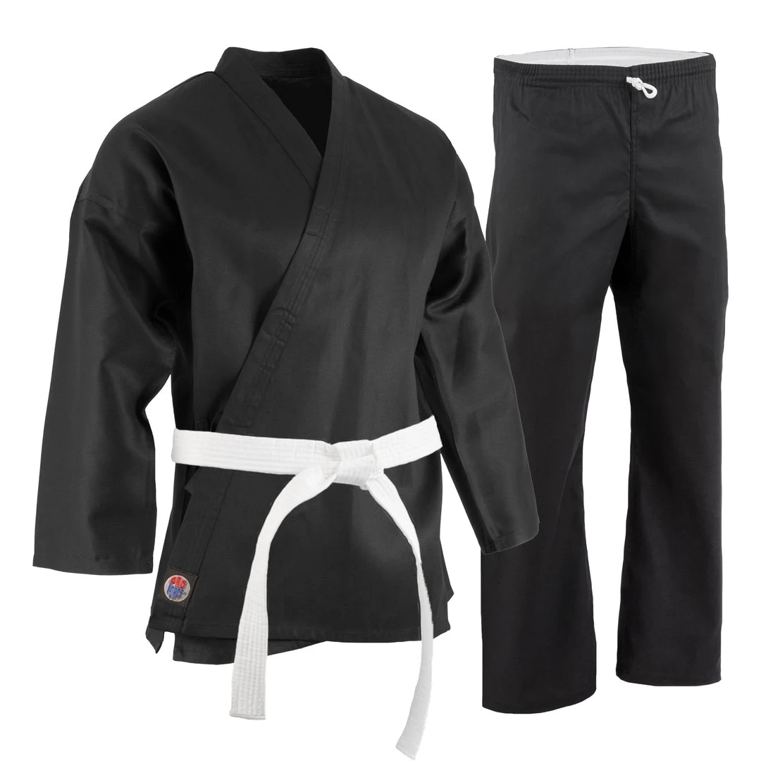 This easy care, permanent press fabric is woven from a perfect blend of 55% cotton and 45% polyester creating a comfortable lightweight 6 oz. uniform. Featuring Ultra Channeling Ventilationâ„¢ for breathability. Available in 4 great colors (black, blue, red and white), each set contains a jacket, pants and a white belt. 6 oz. uniform has an elastic drawstring waistband.